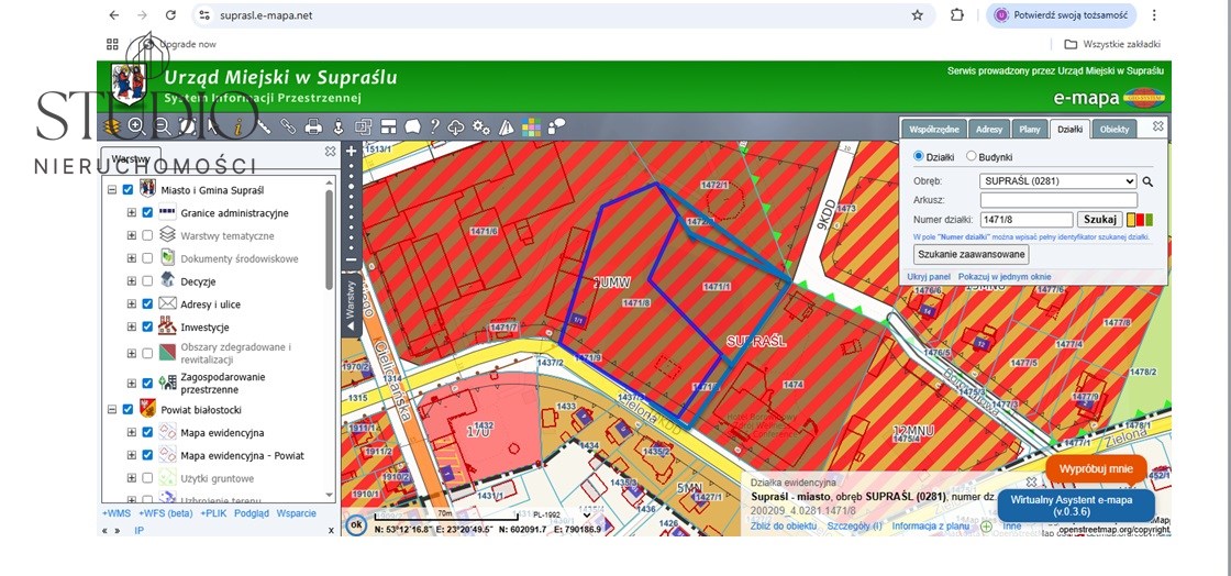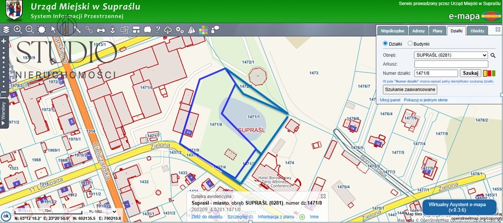 Na sprzedaż piękna działka budowlana o powierzchni 8.115 m2, znajdująca się w Supraślu przy ul. Zielonej.