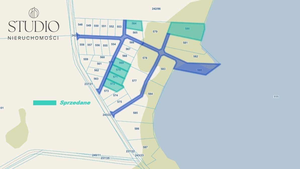 Działki bez bezpośredniego dostępu do jeziora poprzez kupno udziału w drodze dojazdowej(w cenie działki) otrzymają dostęp do jeziora.