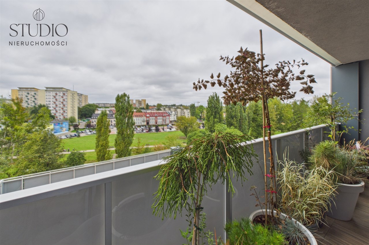 Okna wychodzą na skwer nad rzeką, otoczony zielenią. Piękny widok, spokój i cisza jednocześnie w sercu miasta.