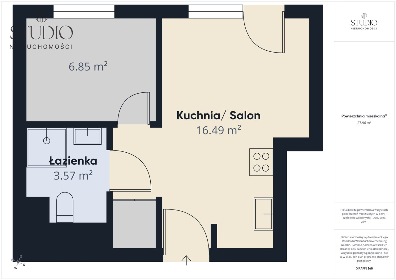 Powierzchnia 28 m² obejmuje: