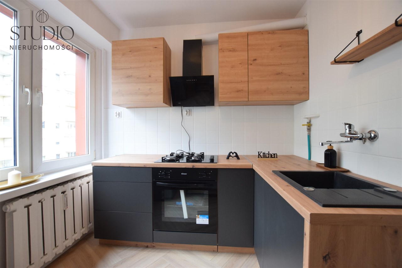 Świeżo wyremontowane mieszkanie na 3 piętrze o powierzchni użytkowej 38m2 składające się z 2 oddzielnych pokoi, jeden z balkonem oraz oddzielnej widnej kuchni i łazienki z wc. Wszystkie meble oraz sprzęt nowy, nie używany. Najem długoterminowy, minimum rok.